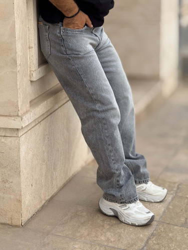 شلوار جین مردانه فولبگ شست طوسی روشن | مناسب استایل روزمره