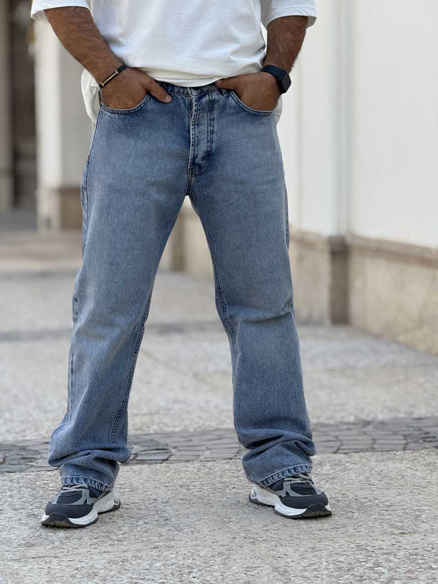 شلوار جین مردانه نیم بگ آبی روشن – استایل کژوال و ترندی _کد۶۸۱۳