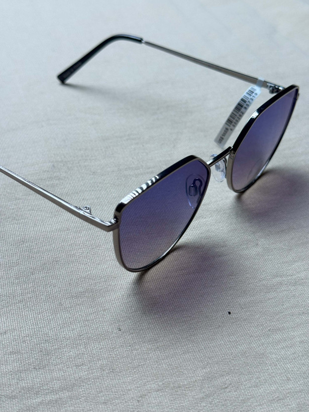 فریم فلزی براق جلوهای لوکس به عینک میدهد و لنز گرادینت بنفش–آبی علاوه بر ظاهر خاص، شدت نور را بهصورت ملایم کنترل میکند.