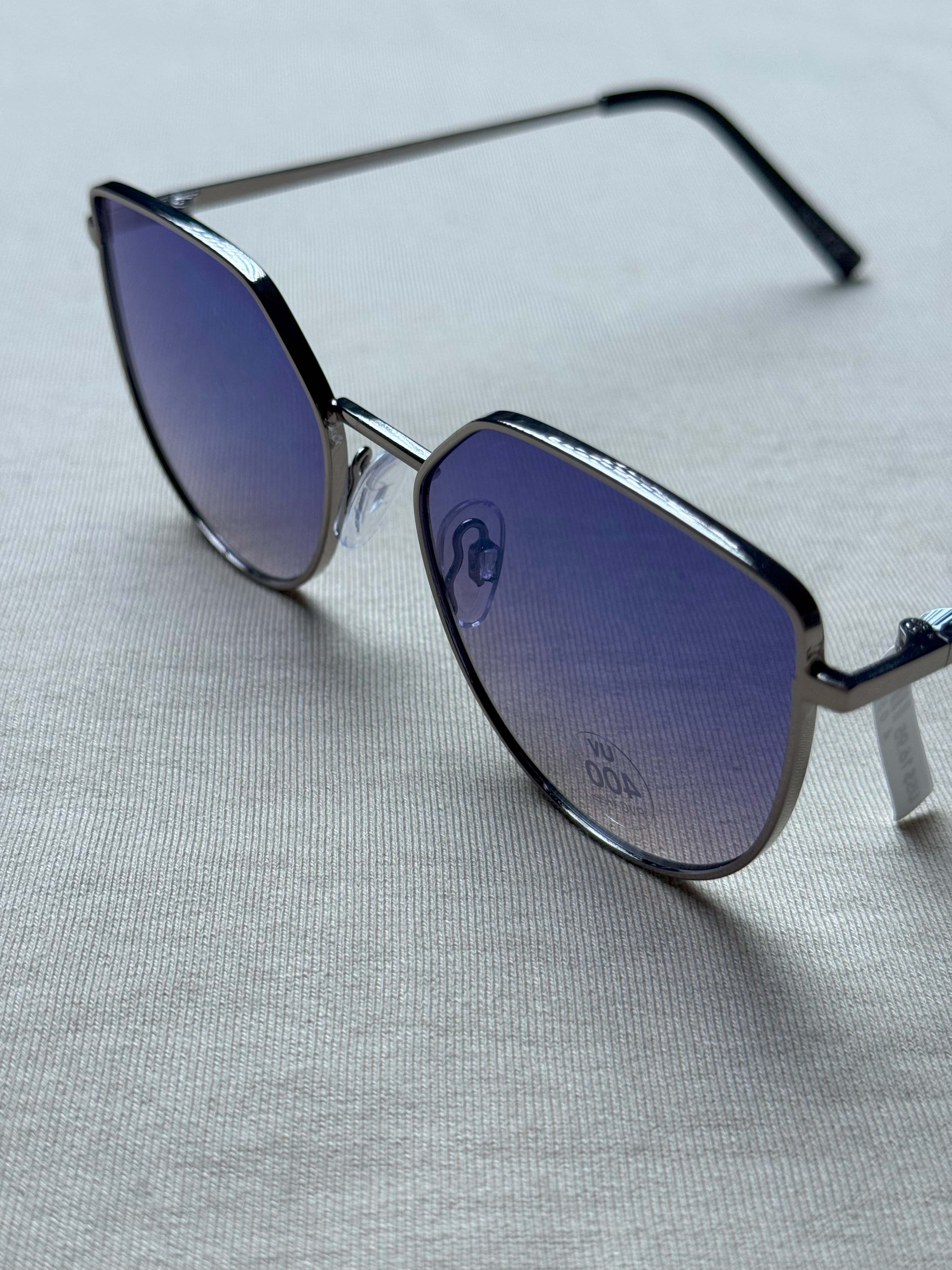 فریم فلزی براق جلوهای لوکس به عینک میدهد و لنز گرادینت بنفش–آبی علاوه بر ظاهر خاص، شدت نور را بهصورت ملایم کنترل میکند.