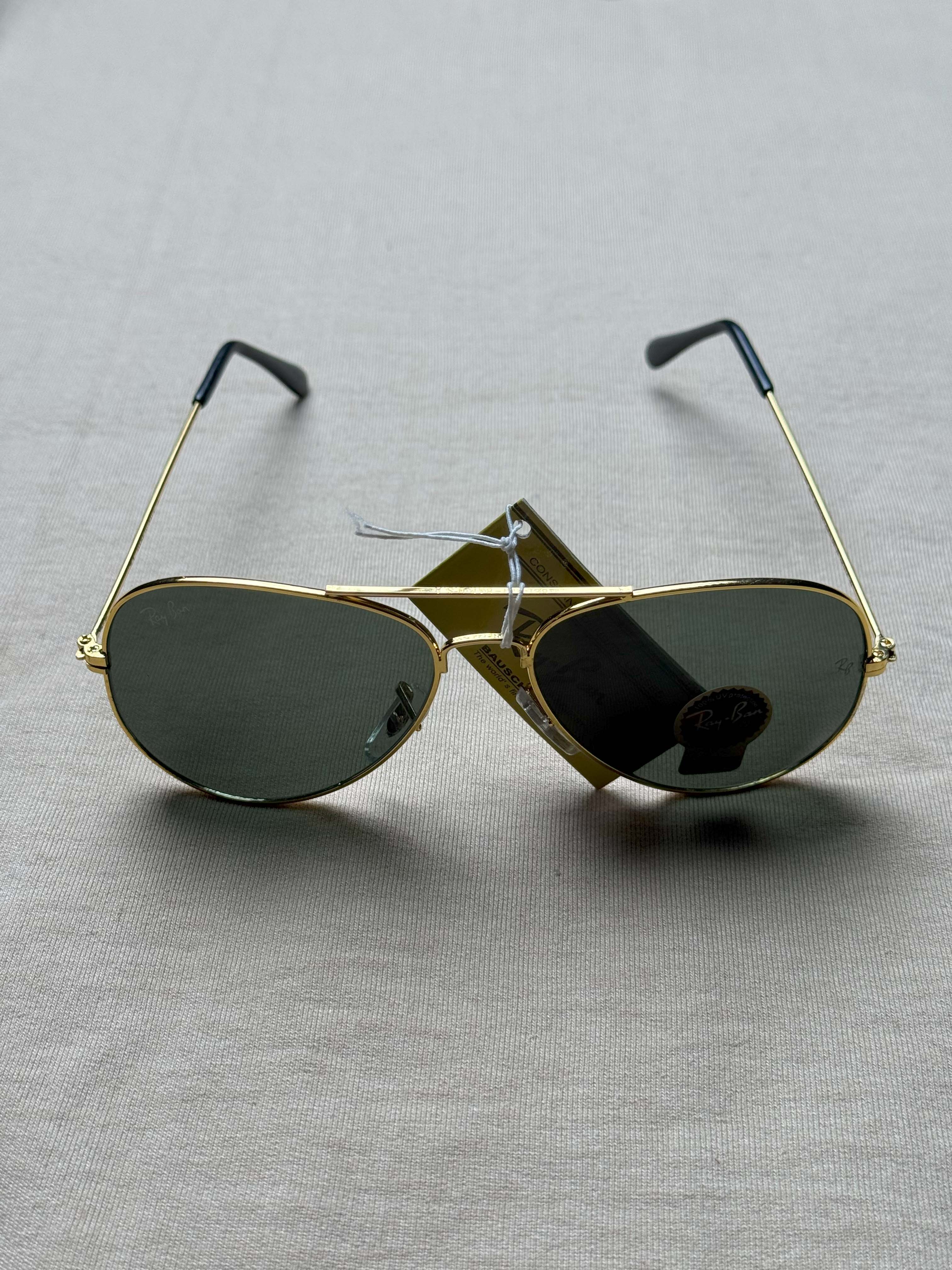 عینک آفتابی مردانه مدل خلبانی با فریم فلزی طلایی و لنز سبز UV400، انتخابی کلاسیک و شیک برای محافظت از چشم و تکمیل استایل مردانه در روزهای آفتابی