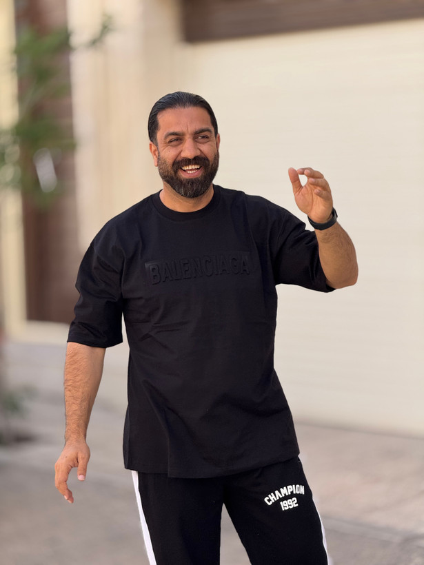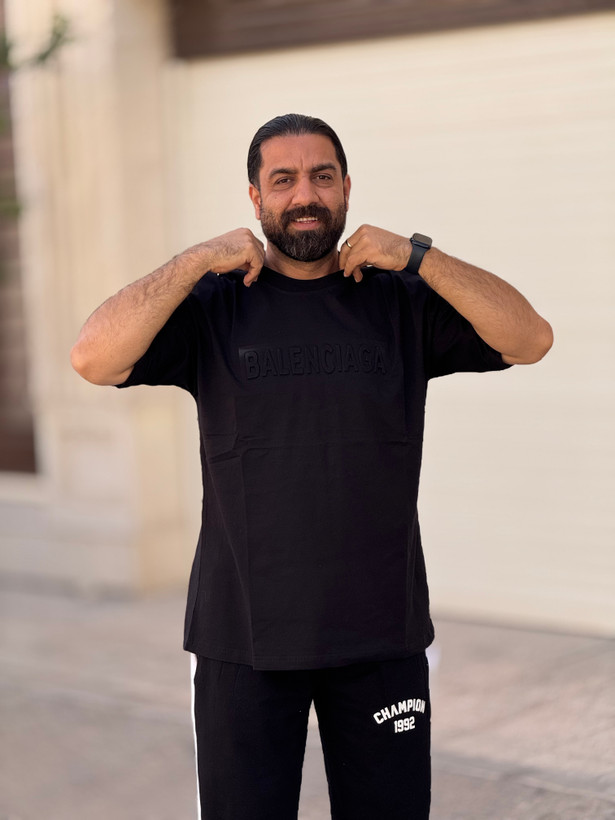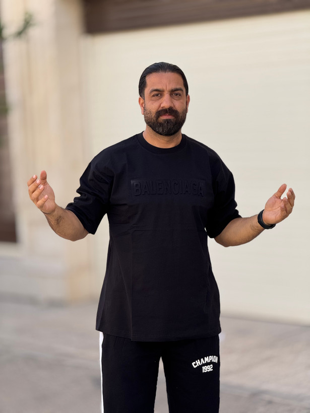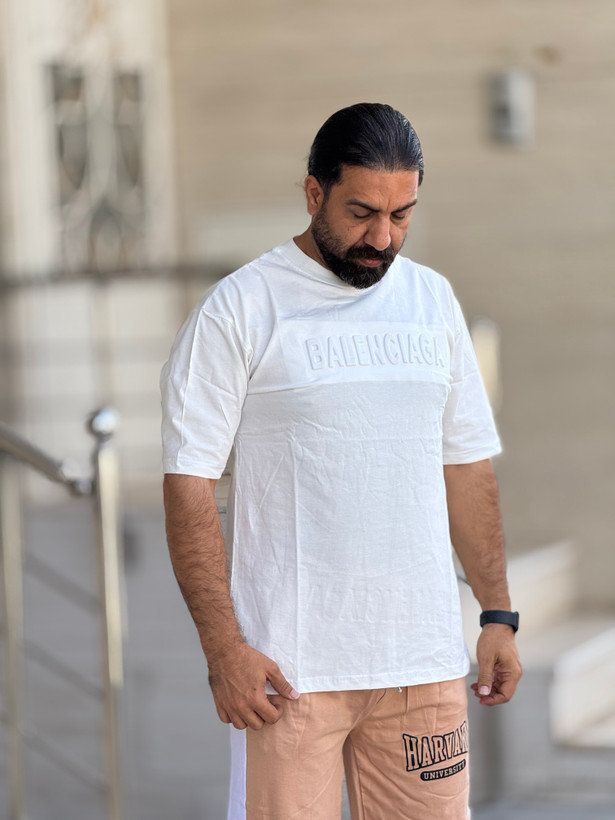 • تیشرت مردانه چاپ برجسته بالنسیاگا – فیت آزاد، سوپر پنبه
