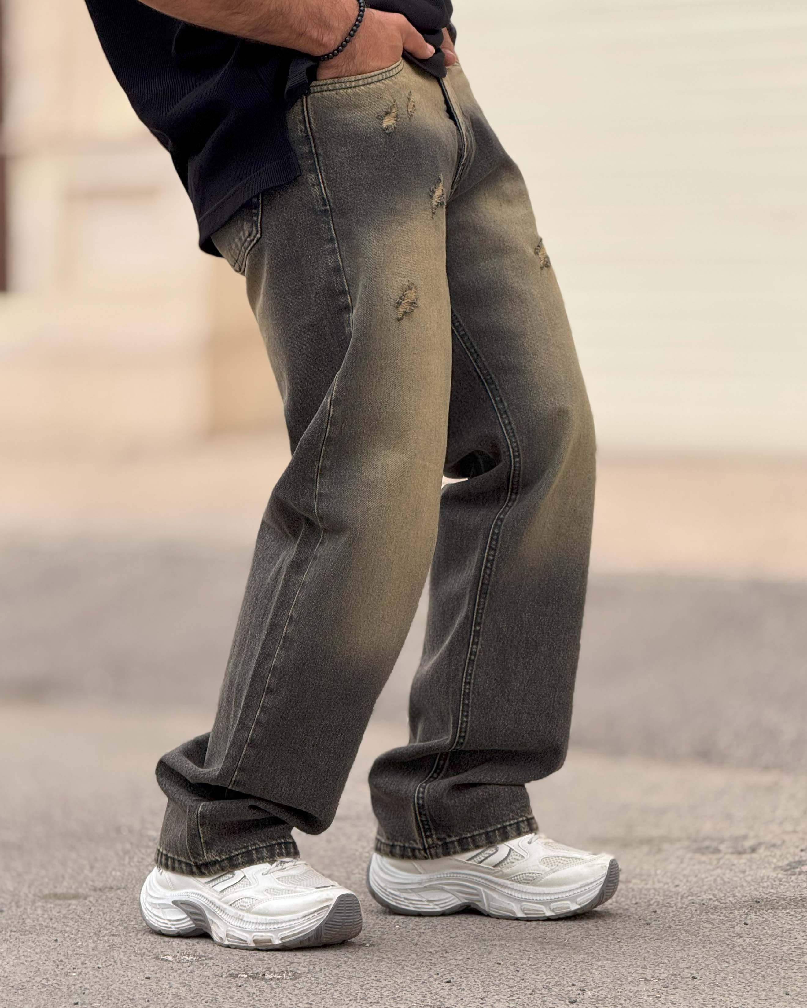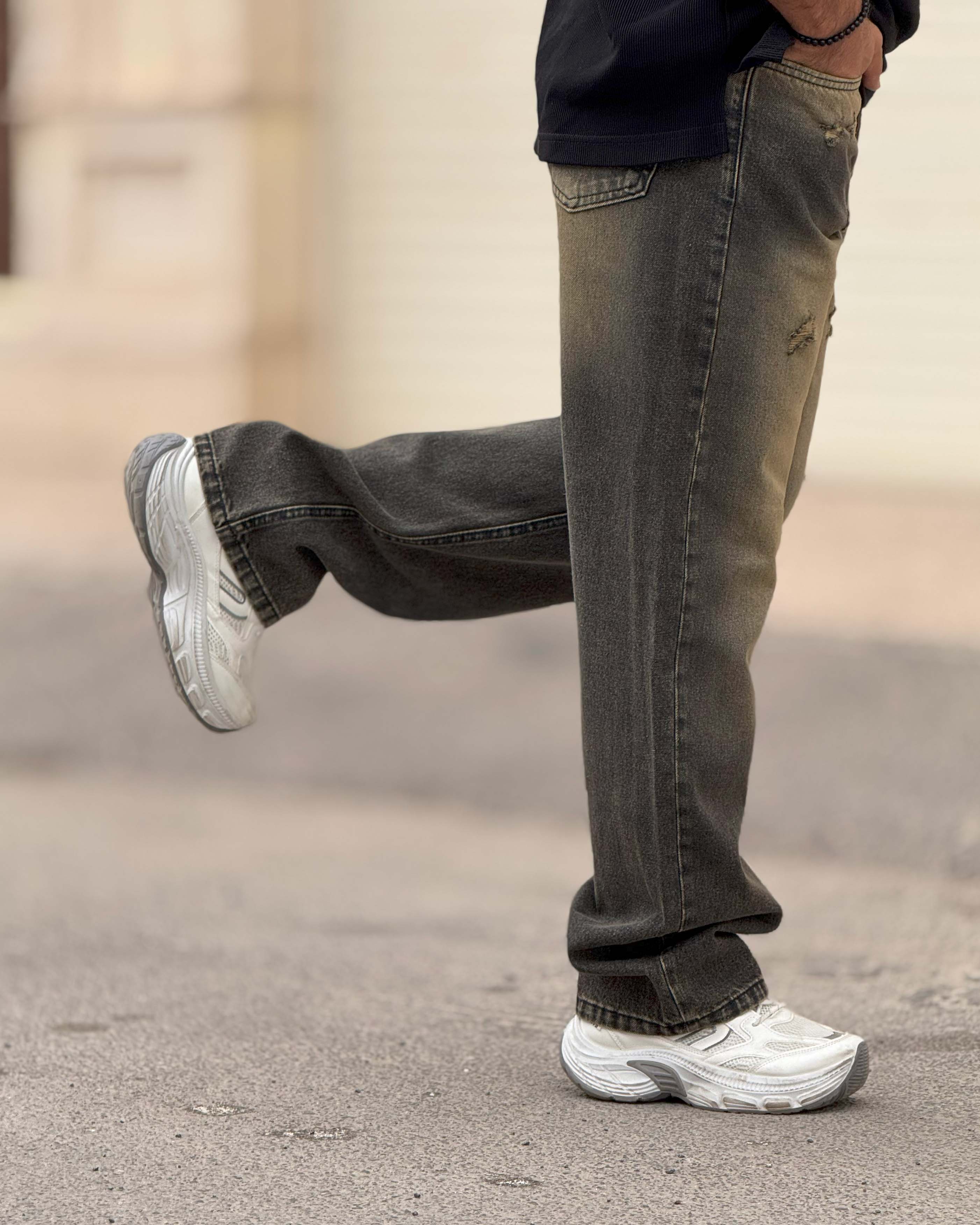 این مدل بازی هوشمندانهای با رنگ دارد. قسمت بالایی طیف خاکیِ گرمتری دارد و به سمت پایین تیرهتر میشود؛ همین گرادینت باعث میشود پا کشیدهتر دیده شود. زاپها در حدی هستند که حس وینتیج بدهند اما استایل را شلوغ نکنند. فیت نیمبگ آزادی کافی برای راحتی دارد ولی روی کفش خوب مینشیند و حالت افتاده و بیفرم پیدا نمیکند. برای کسانی که میخواهند از جینهای ساده فاصله بگیرند اما وارد قلمرو اغراق نشوند، انتخاب هوشمندانهای است