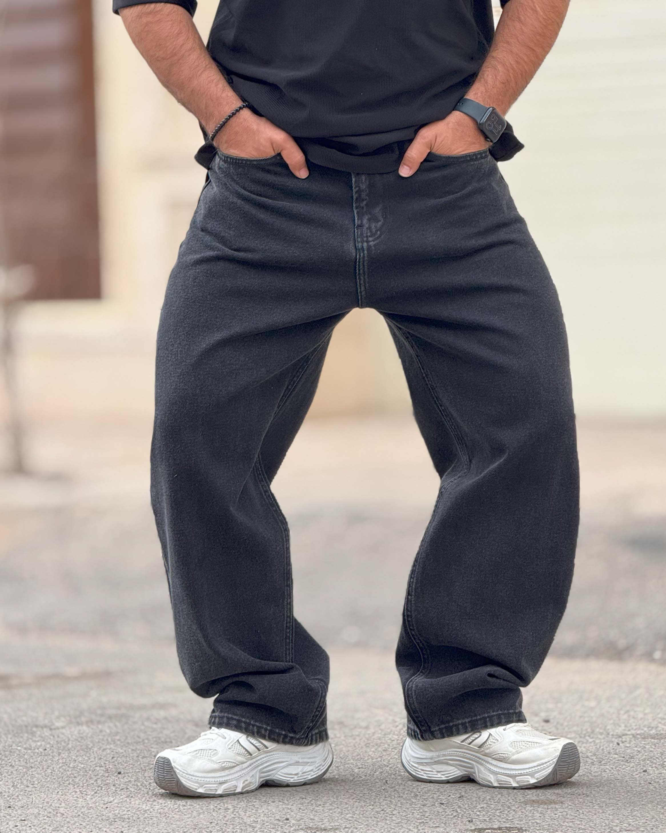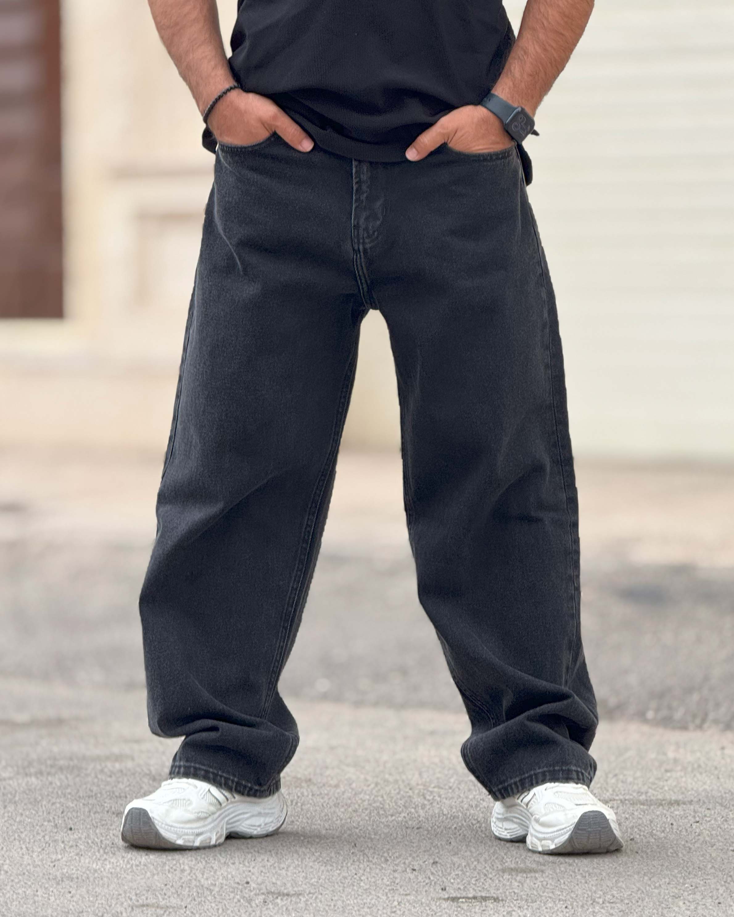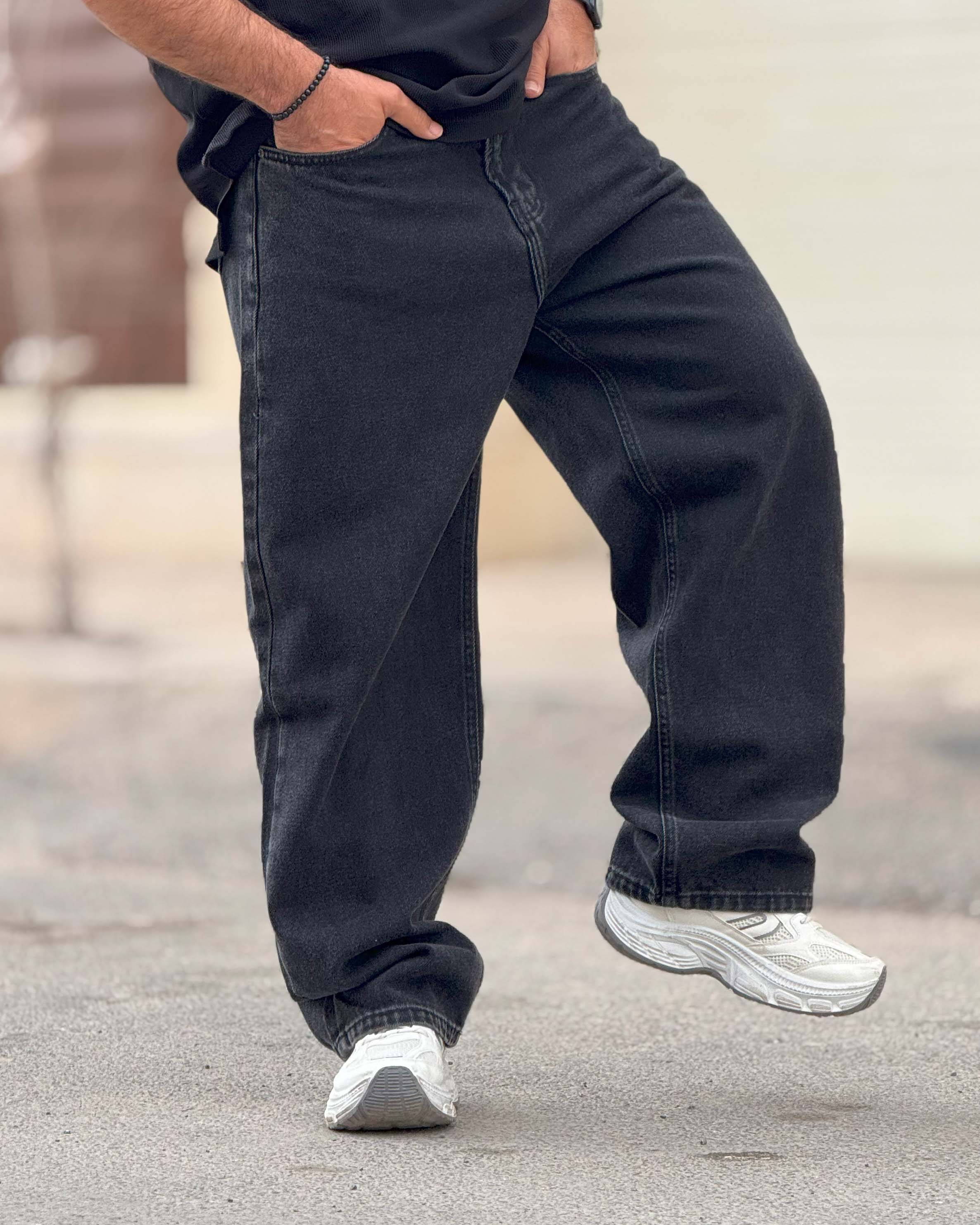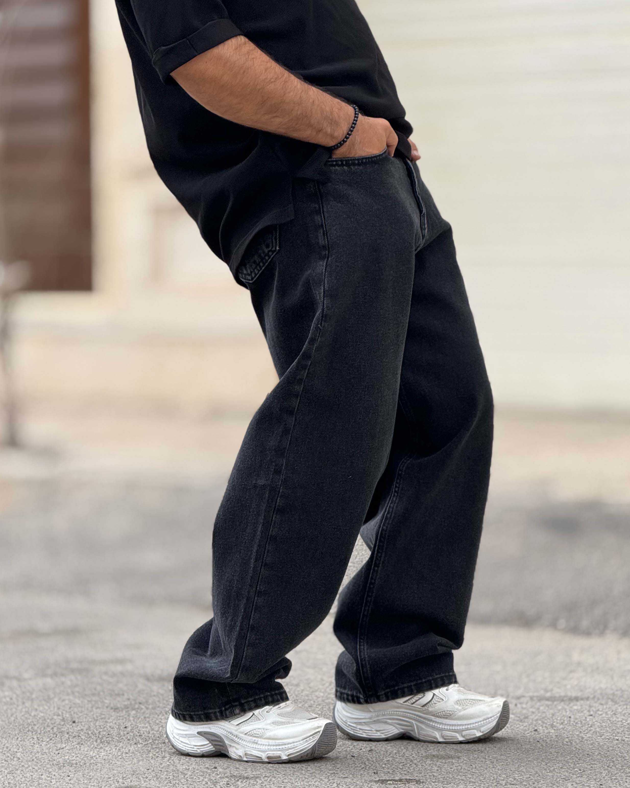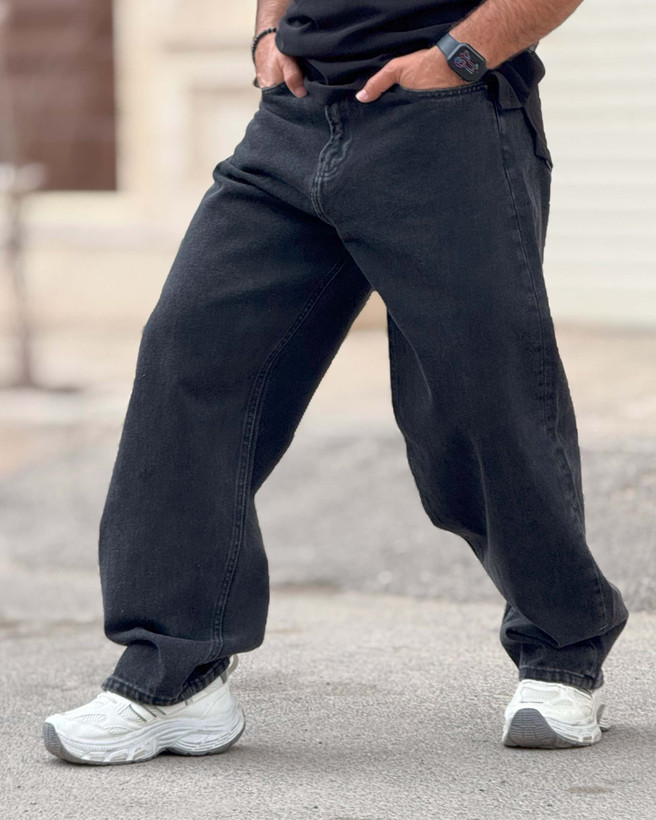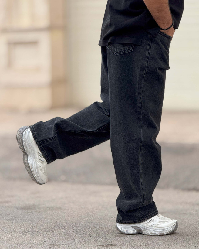 این مدل یک فول بگ کلاسیک مشکی است که روی مینیمال بودن بازی میکند. نبود زاپ و افکتهای شلوغ باعث شده کاملاً تمیز و کاربردی باشد. رنگ مشکی ذغالی کمک میکند بهراحتی با تیشرت سفید، هودی مشکی یا کت جین ست شود. فیت آزاد آن آزادی حرکت میدهد اما به دلیل برش درست، روی کفش جمع نمیشود و افت بیفرم پیدا نمیکند. اگر دنبال جینی هستی که هم ساده باشد هم استایل خیابانیات را جدیتر نشان بدهد، این مدل انتخاب امن و حرفهای است